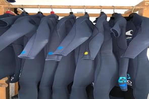 néoprène (wetsuit) courtes ou longues selon la saison ainsi que des chaussons néoprène.